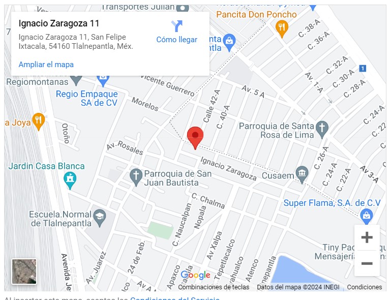 Ignacio Zaragoza 11, Col San Felipe Ixtacala, C.P. 54160. Tlalnepantla. Estado de México.